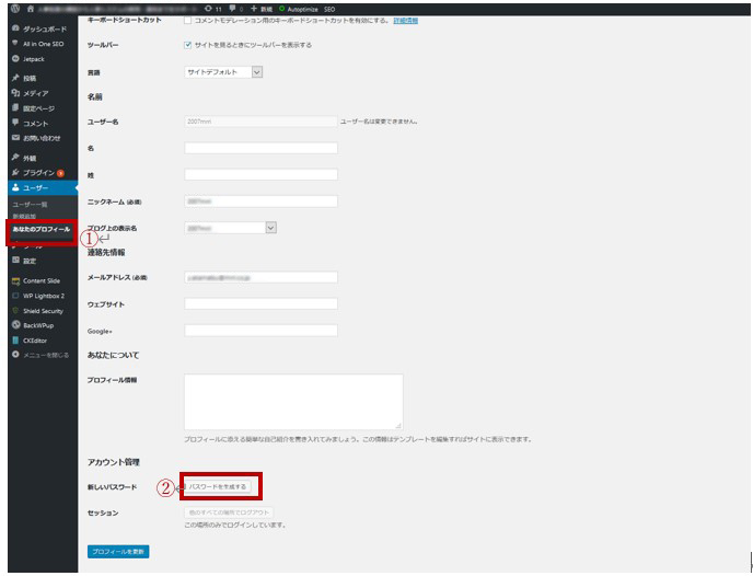 4)「プロフィールを更新」ボタンをクリックすると、パスワードが変更されます。