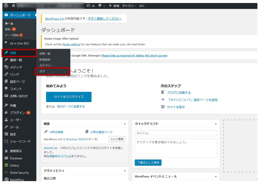 ダッシュボード>投稿>タグ
