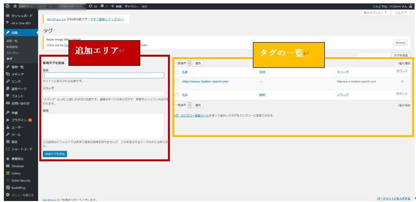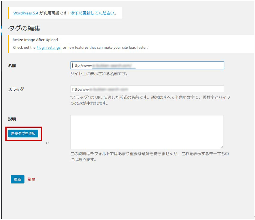 ただし、この画面から追加するとスラッグ名の編集などができないので、あとでタグ編集画面から該当タグを選択して編集することをおすすめします。