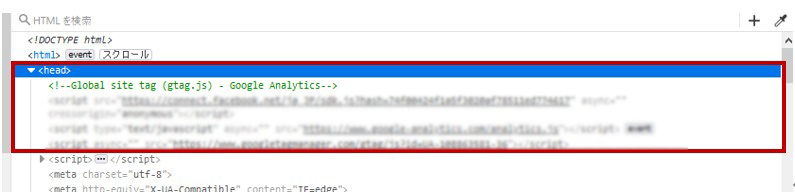 ⑩ウェブサイトのトラッキングコードを<head>内に貼り付けて完成
