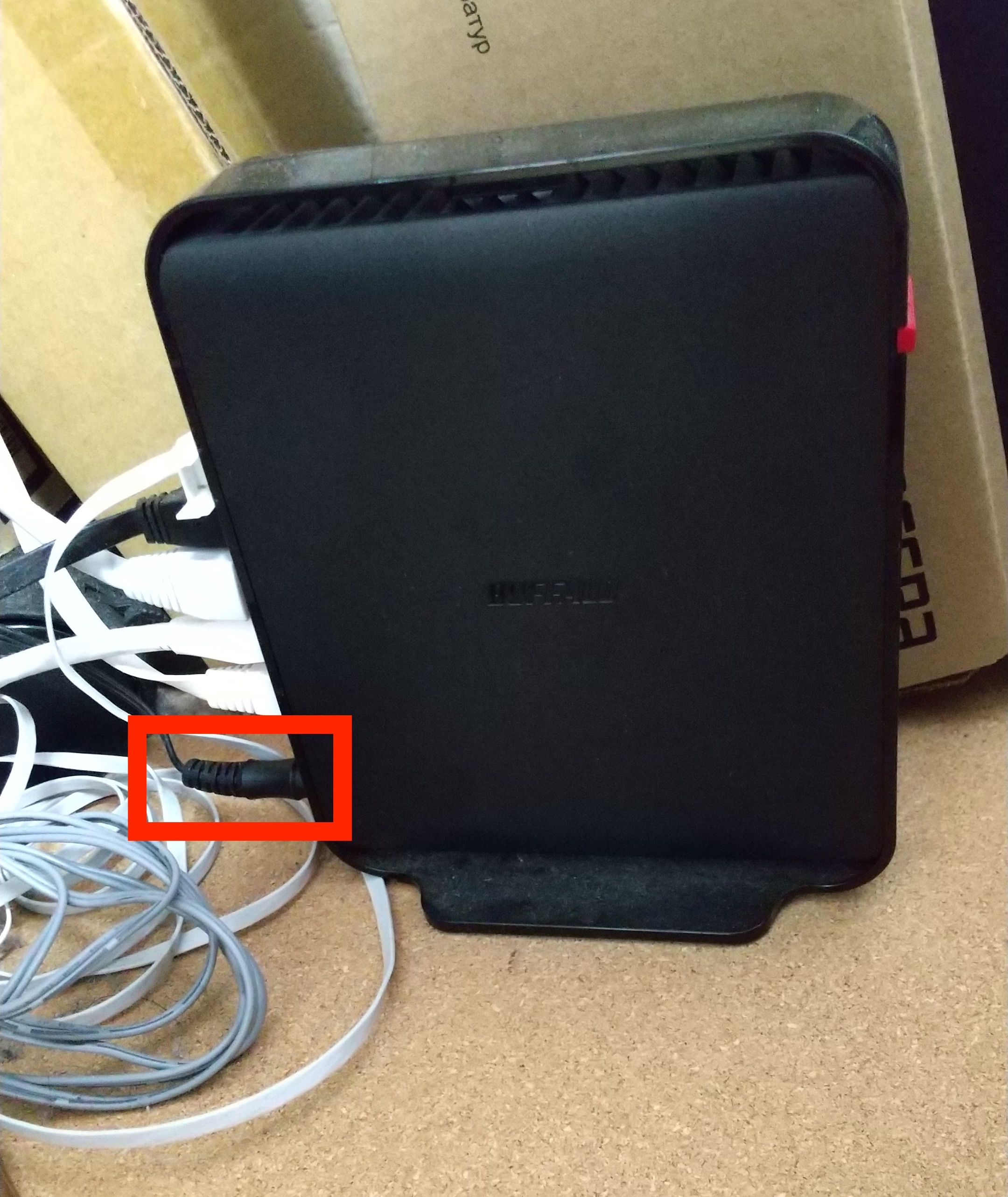 Wi-Fiの元栓(一番下の黒線)赤枠線の所を一度外してまたつけ直してください。
